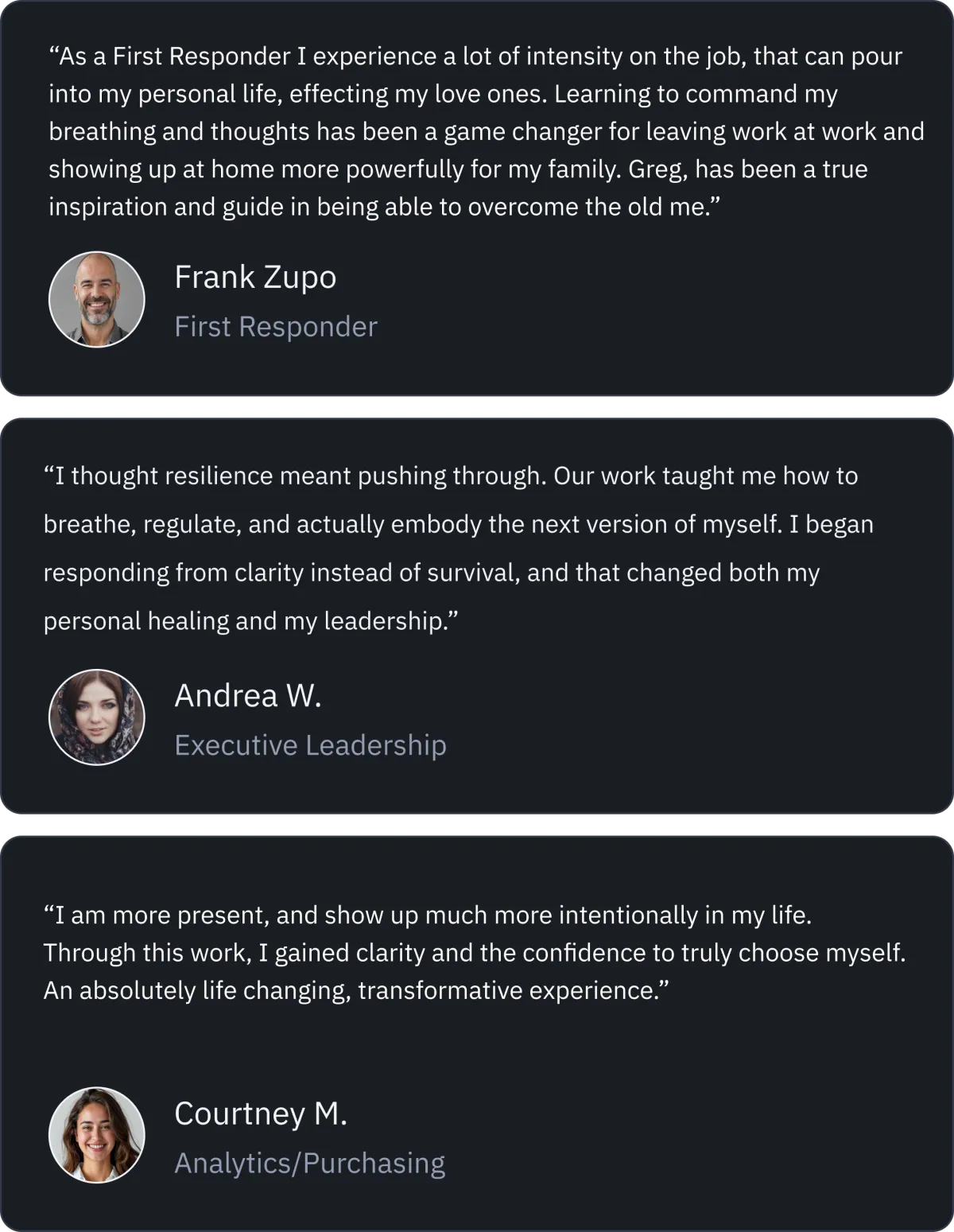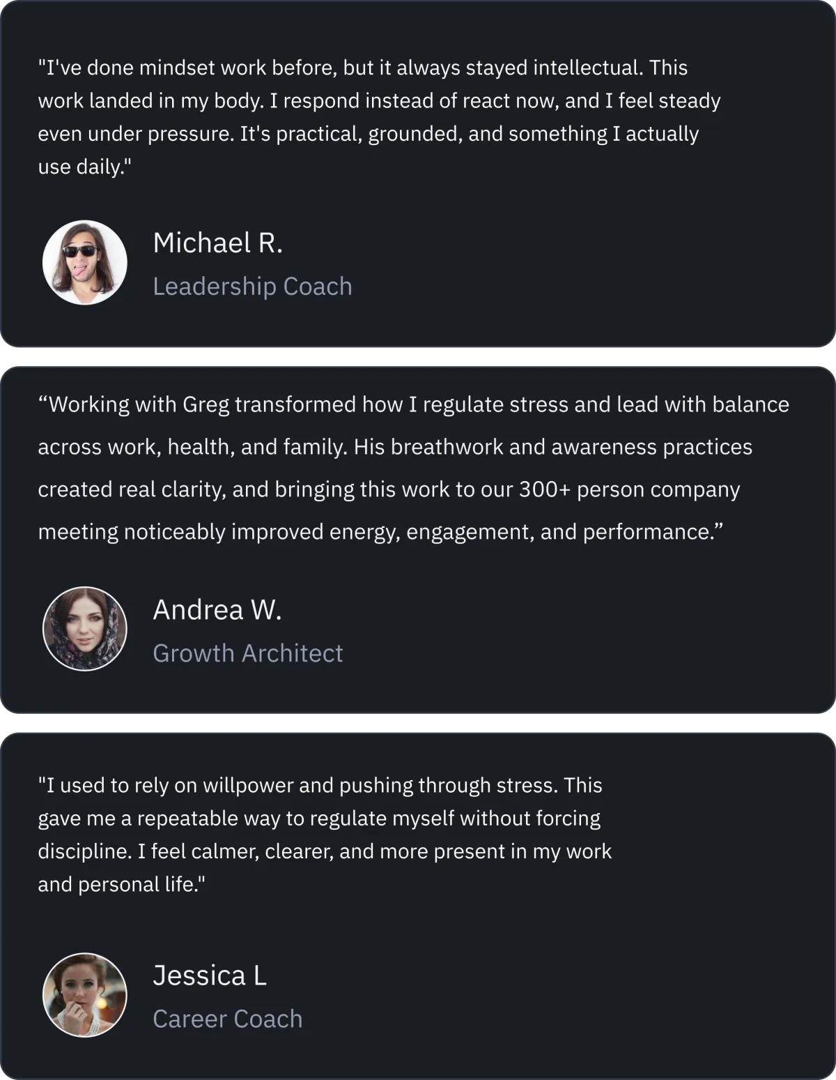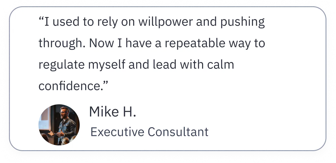 Your nervous system becomes regulated, allowing calm, confident decisions under pressure—without burnout.